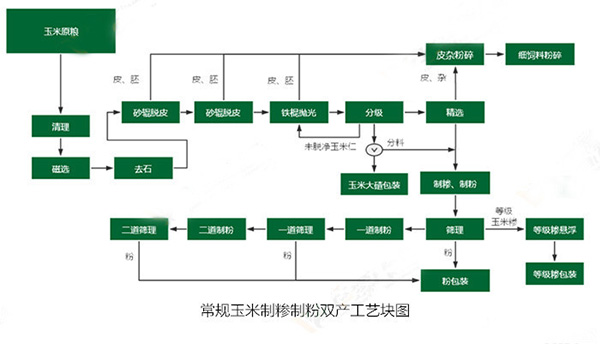 2、玉米干法成套加工工藝,物料加工過程無需接觸水,加工更衛生,更簡潔、更省力;